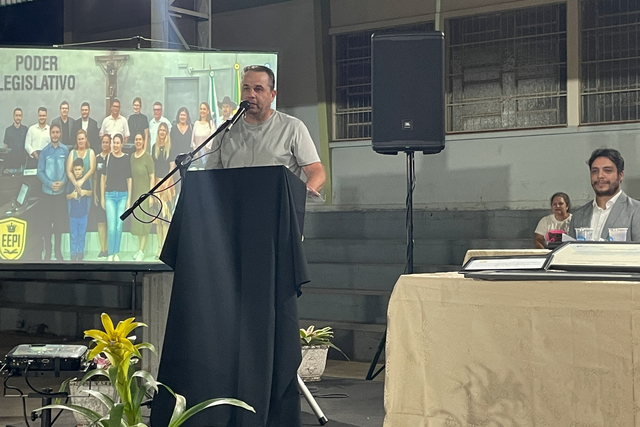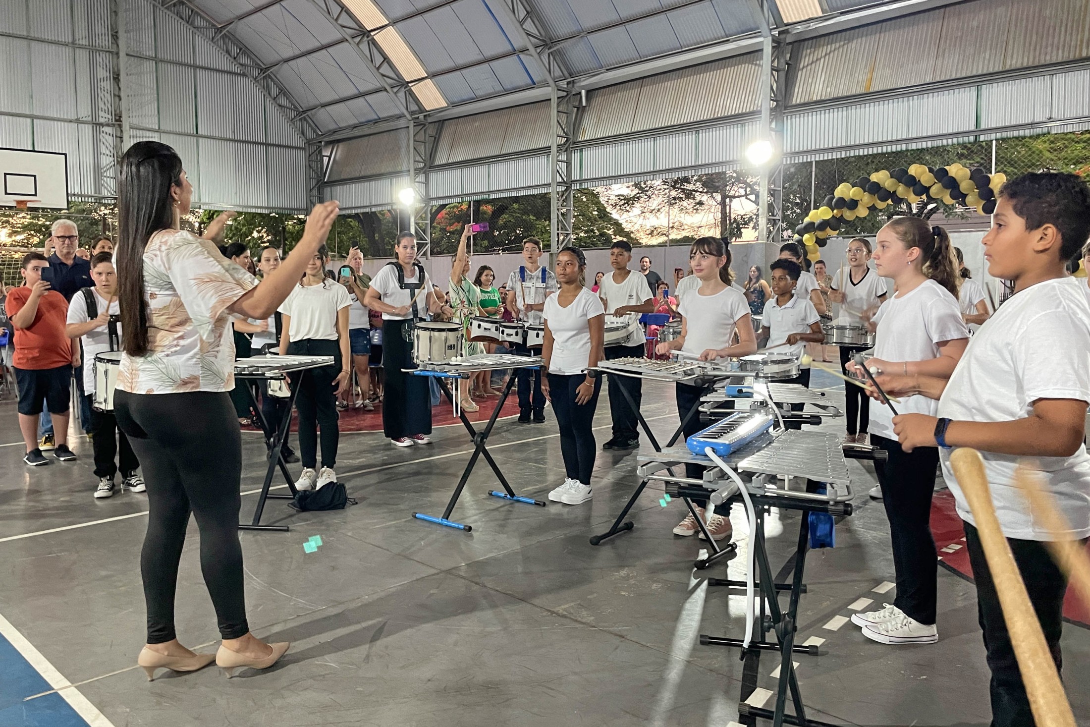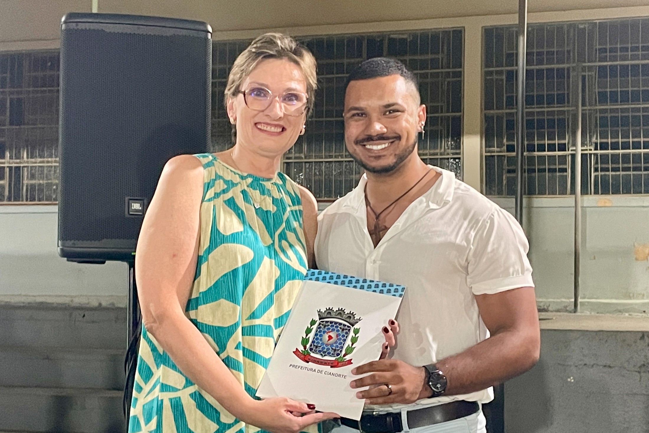 O cerimonial teve continuidade com as apresentações de ginástica "Conjunto Mãos Livres" e "Conjunto Aparelho Arco", do Centro Artístico e Esportivo Thays Pires, e entrega à escola do Voto de Parabéns da Câmara Municipal de Cianorte, pela vereadora, Professora Neuza Casassa. A solenidade contou, ainda, com a presença do vice-prefeito, João Alexandre Teixeira; dos vereadores, Pastor Dejair Barbosa Melo, Márcia Pereira, e Thiago Fontes; do representante do Núcleo Regional de Educação de Cianorte, Marlon Cantarin; da secretária municipal de Educação, Jakeline Plácido Marcon; e do secretário municipal de Cultura, Evandro de Castro.