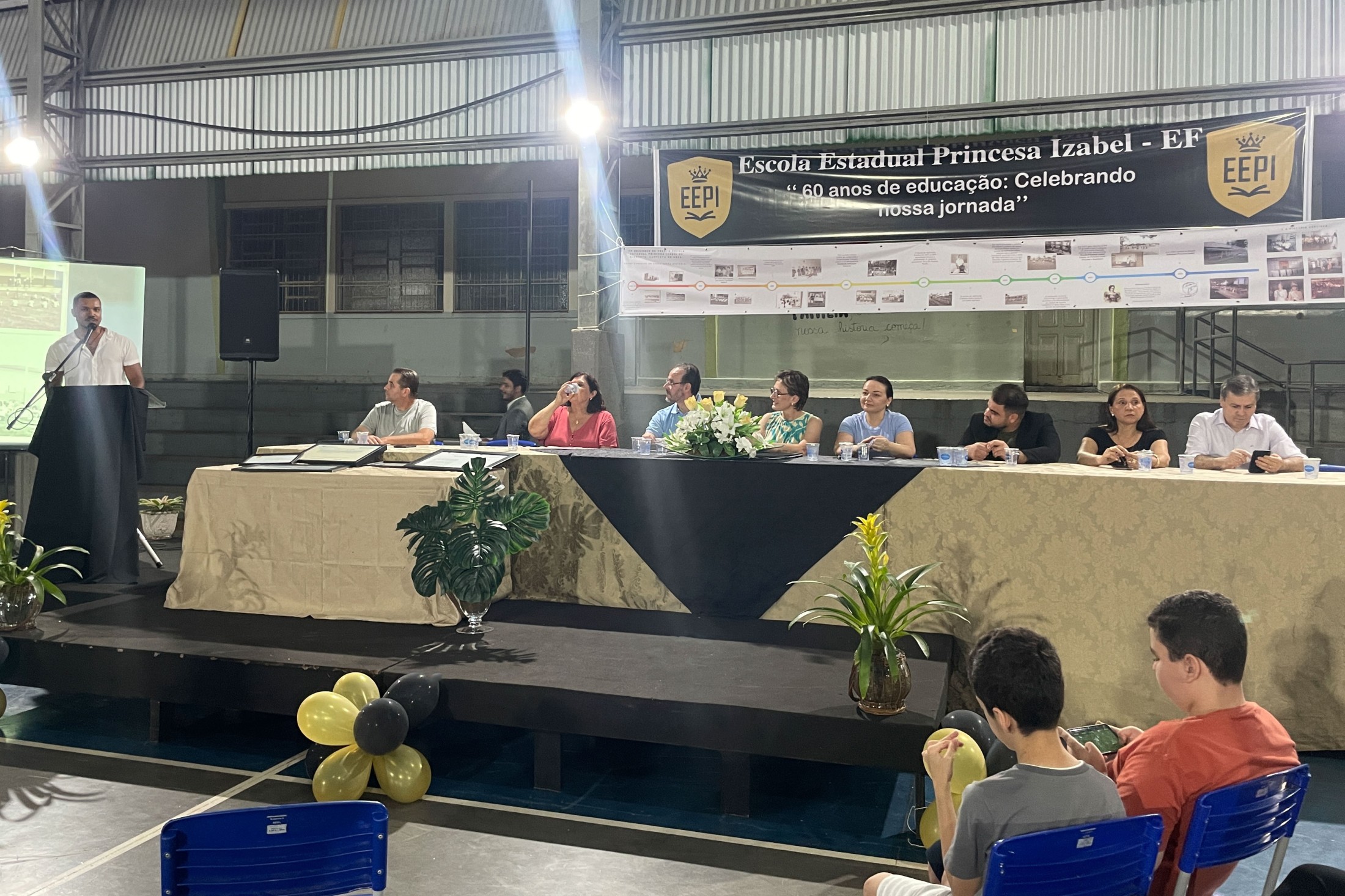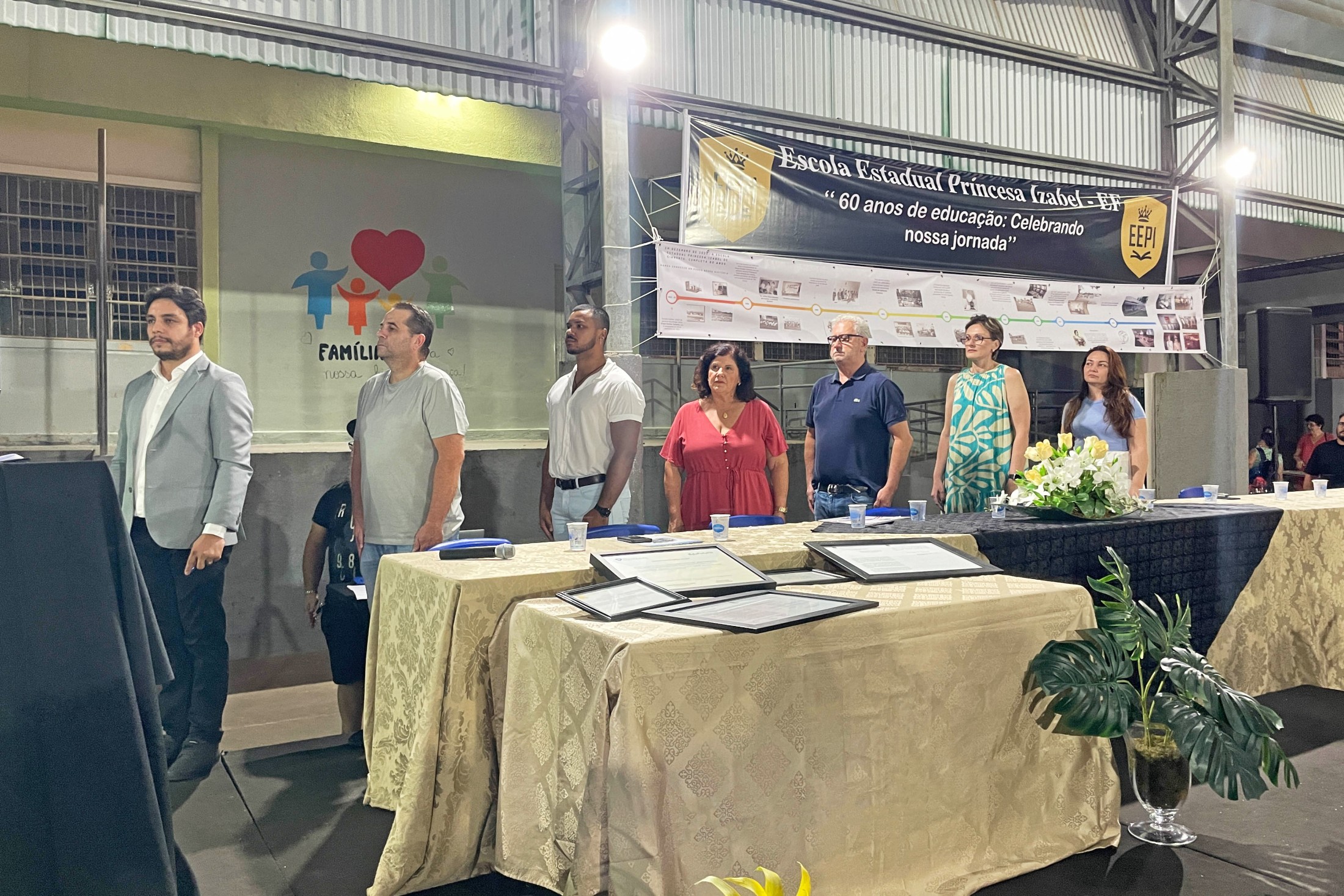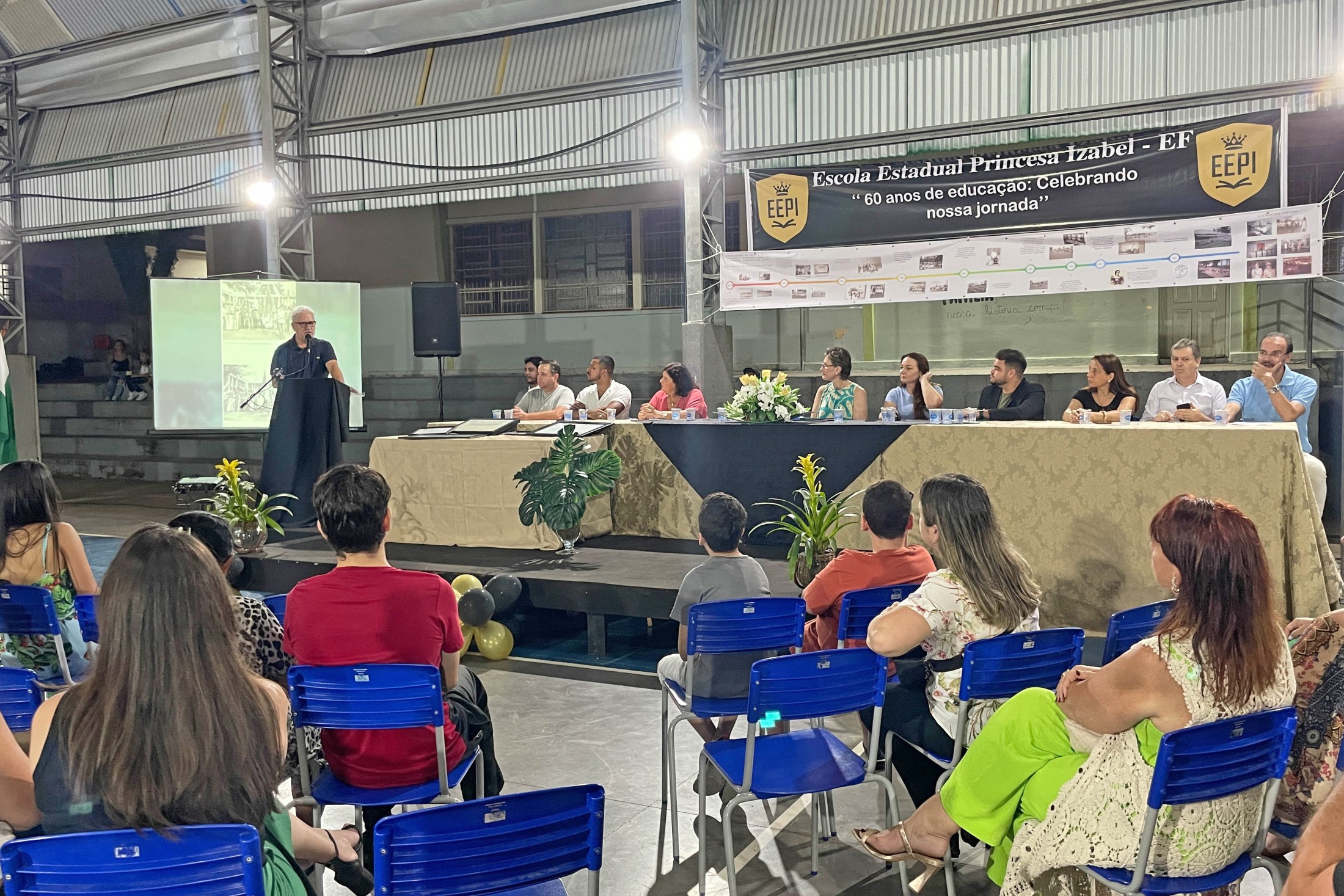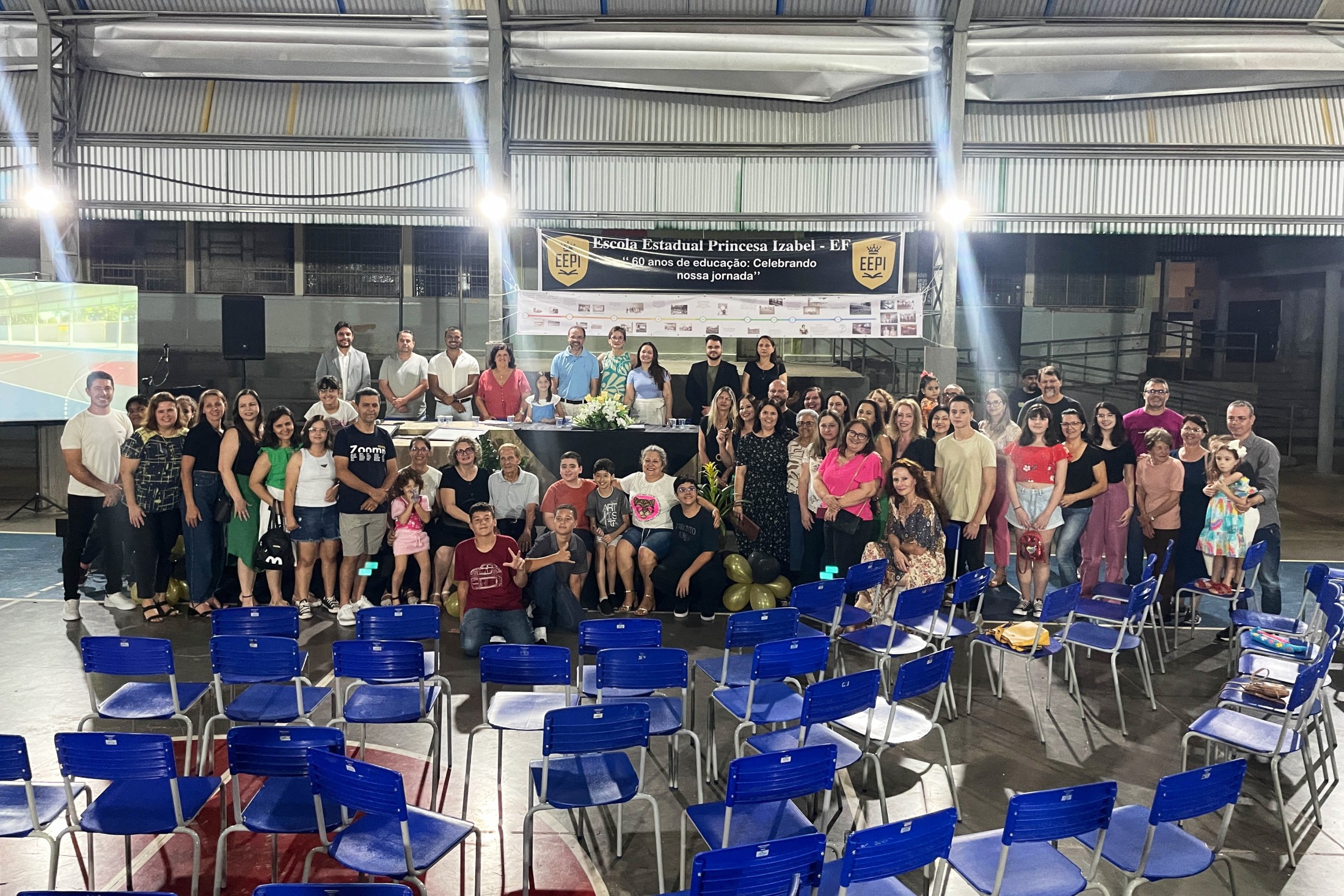 No próximo dia 20, a Escola Estadual Princesa Izabel completa 60 anos de atividade. Para celebrar as Bodas de Diamante, a instituição promoveu, na noite dessa terça-feira (12), uma reunião pública, nas dependências da quadra coberta, com a presença de autoridades, profissionais da educação, estudantes e familiares. Homenagens e apresentações artísticas enriqueceram o momento.