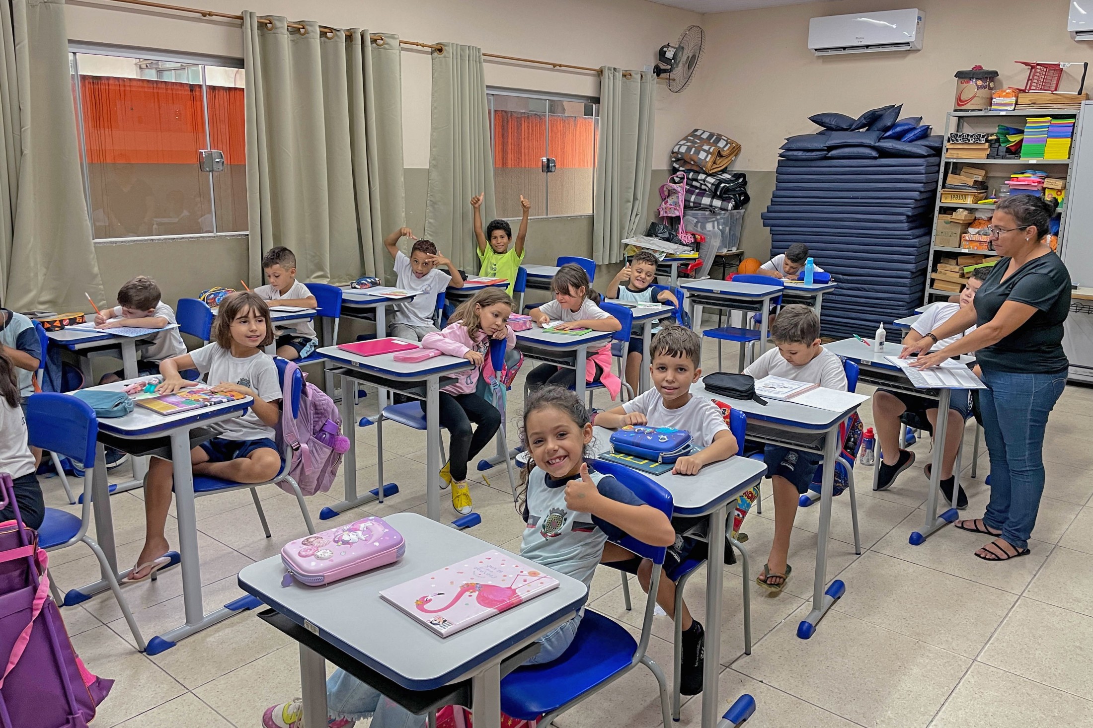 O ano letivo de 2024 terá novidades para quatro turmas, de três instituições de ensino, que passam a integrar o Projeto Bilíngue, com o ensino da Língua Inglesa como língua franca. O Maternal 2, do Centro Municipal de Educação Infantil (CMEI) Pedrinho e Narizinho (Cianortinho); o 1º ano B, da Escola Municipal General Ernesto Geisel (São Lourenço); e o 1º e 2º anos, da Escola Municipal Liomar Gomes (Zona 4) foram os primeiros contemplados pelo projeto, que deve ser estendido gradualmente a toda a Rede Municipal de Ensino.