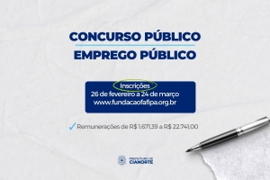 EMPREGO PÚBLICO: No caso do Concurso para Emprego Público, as vagas e o cadastro de reserva são para o cargo de Agente Comunitário de Saúde (40h). A remuneração é de R$ 2.824,00 e a taxa de inscrição de R$ 50,00. A prova objetiva será no dia 14 de abril e a homologação do resultado final e da classificação está prevista para 04 de junho.