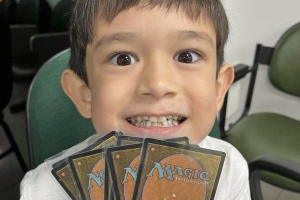 Prova disso, é Theo Ferraz Fuzimoto. Frequentando as reuniões há um mês, o menino de seis anos passou a colecionar além das cartas de Magic, mas também vivências enriquecedoras de camaradagem e estratégia. “Eu estava meio enferrujado. Cheguei aqui e o pessoal me ajudou a organizar o deck, lembrar das regras e a analisar melhor cada jogada antes de agir. É bem legal”, destaca.
