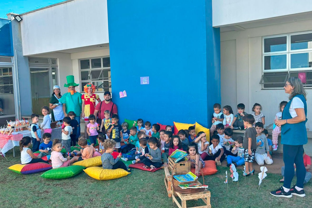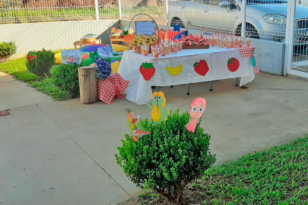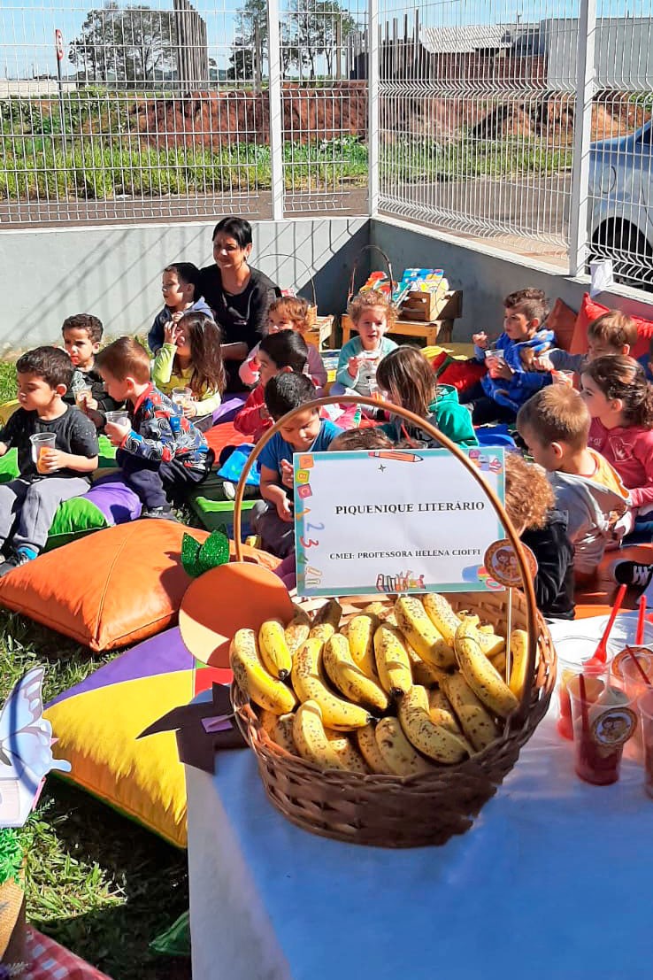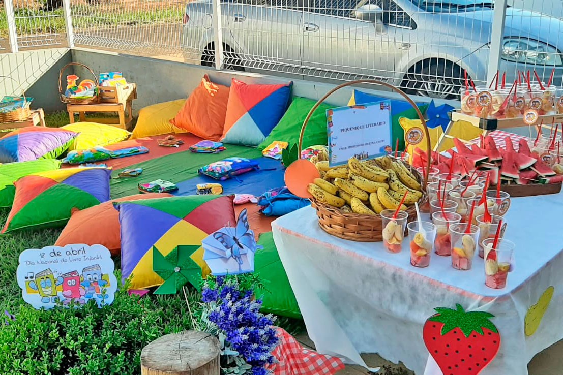 Em comemoração ao Dia Nacional do Livro Infantil, celebrado nesta quinta-feira (18), a equipe do Centro Municipal de Educação Infantil (CMEI) Professora Helena Cioffi (Jardim Verdes Campos) organizou um Piquenique Literário. Em um espaço colorido e aconchegante, os pequenos tiveram a oportunidade de manusear livros e se deliciar com frutas especialmente preparadas para o momento.