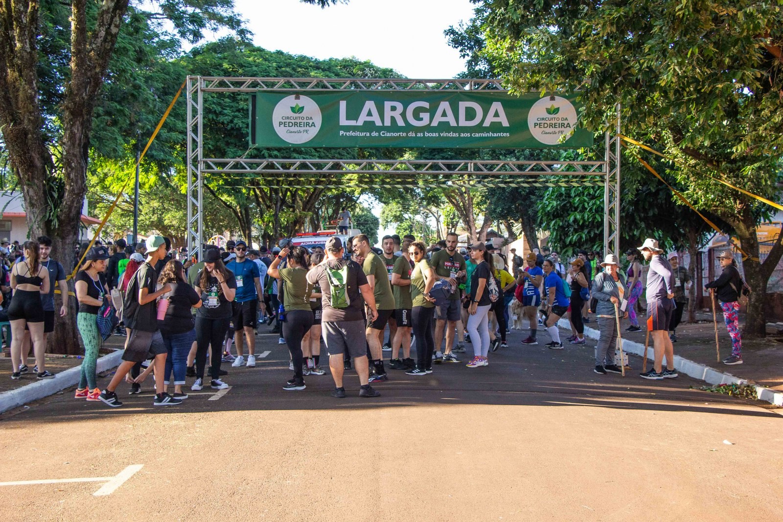A concentração, com credenciamento, teve início às 7h, na quadra coberta. Houve a arrecadação de doações espontâneas de 120 kg de alimentos não perecíveis, repassados ao Ministério da Ação Social da Igreja Sou Vivo. Os participantes contaram com café da manhã opcional, por adesão. Às 8h, começaram os preparativos para a largada, com um alongamento coordenado pela Secretaria Municipal de Esporte e Lazer, seguido da abertura da trilha.