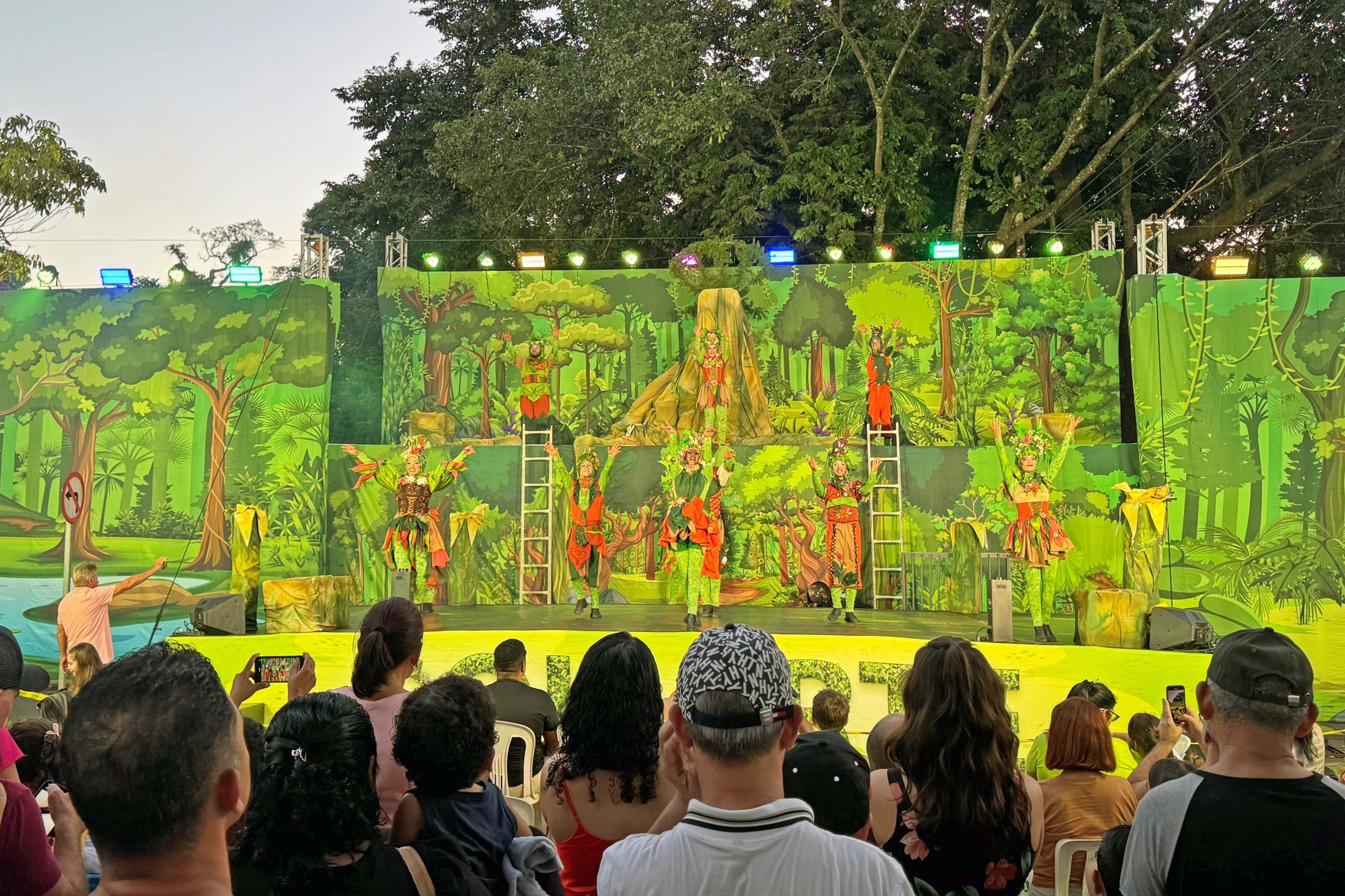 Por fim, o Espetáculo "Florestas Urbanas", encenado pelo renomado Espaço Sou Arte, encantou o público com uma apresentação lúdica, bem-humorada e reflexiva, explorando questões cruciais relacionadas à educação ambiental e à preservação da natureza. O número mesclou dança, teatro e circo, proporcionando uma experiência única aos espectadores, com acrobacias de solo, malabares, paradas, adágios, pirâmides humanas, entre outros.