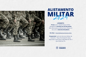 Para efetuar pela internet, basta acessar o site alistamento.eb.mil.br. Já o atendimento na Junta de Serviço Militar de Cianorte, com sede no Paço Municipal (1º piso, próxima ao cadastro Técnico), ocorre de segunda a sexta-feira, das 8h30 às 12h e das 13h30 às 17h. É preciso apresentar a Carteira de Identidade (RG), CPF e comprovante de endereço.