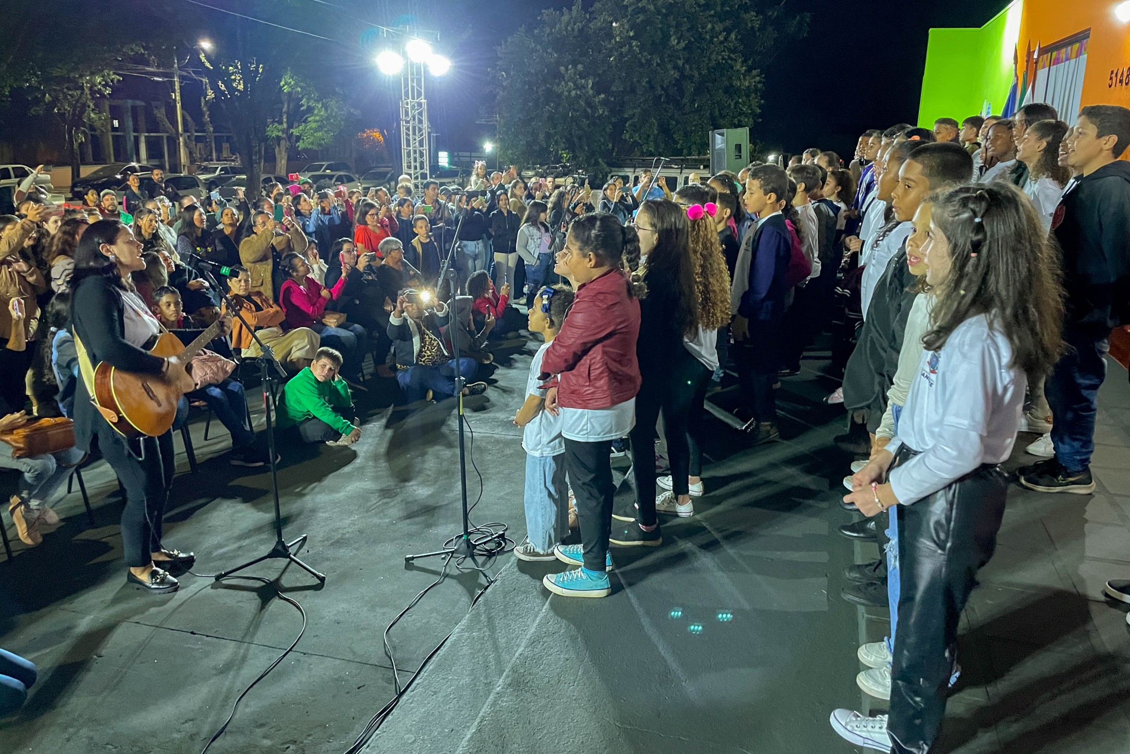 Durante a solenidade, o Hino Nacional foi interpretado pela coordenadora Educacional e Pedagógica de Tecnologia, Inovação e Educação Integral, Claudia Roberta Stefane, que também cantou “Anunciação”, acompanhada pelo professor, Gil Alves. Houve, ainda, apresentações musicais dos estudantes do 1º ao 5º ano das escolas municipais Jardim Aeroporto e Jorge Moreira da Silva, sob coordenação da professora Natali Pardo.
