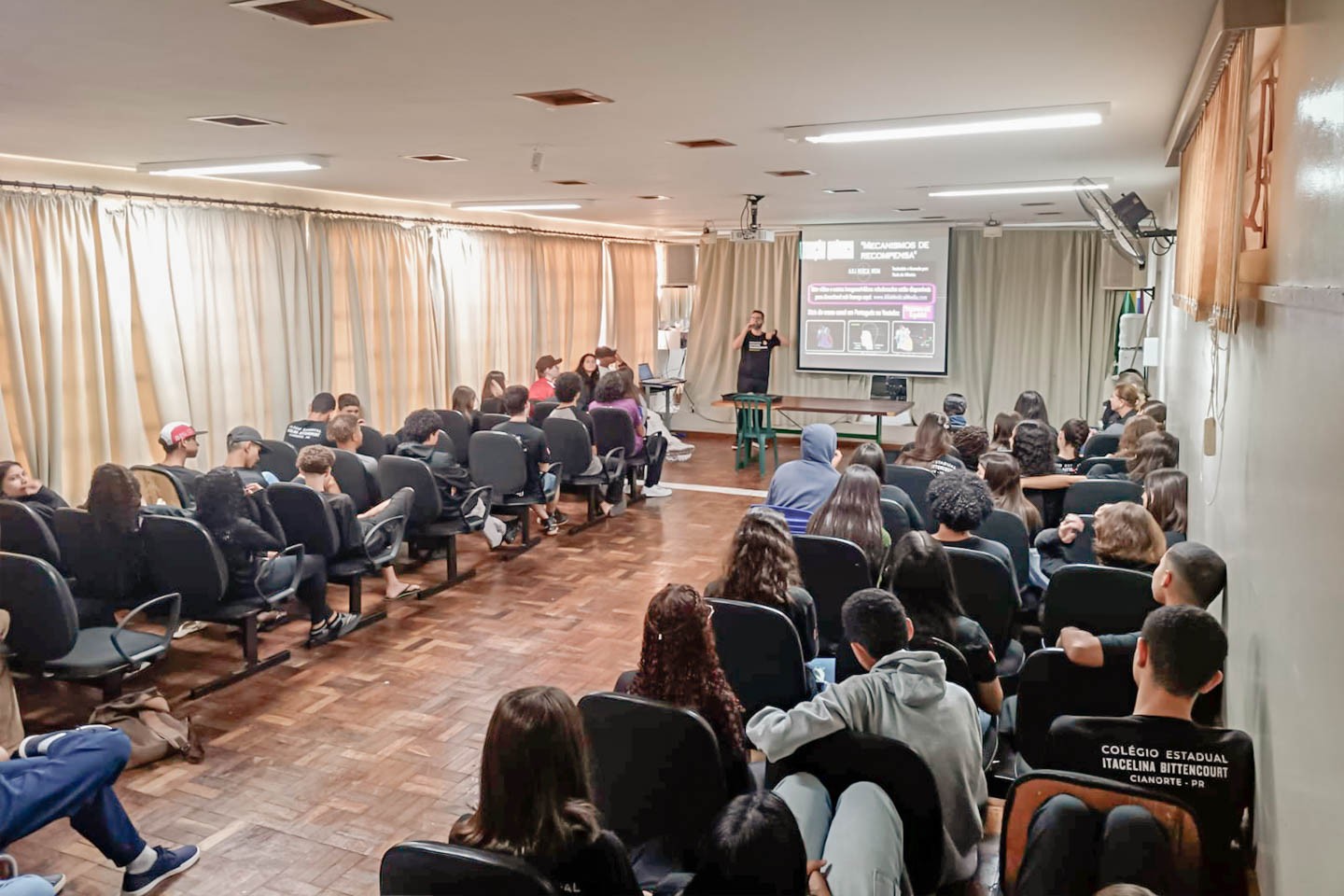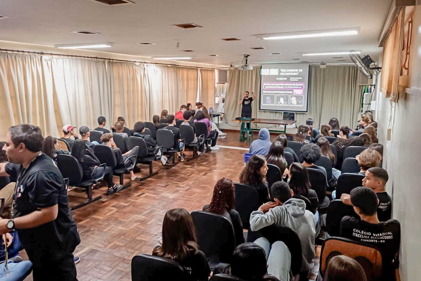 A primeira instituição de ensino contemplada foi a Itacelina Bittencourt. O conselheiro e enfermeiro da Comunidade Terapêutica Sou Vivo, Rodrigo Luis Bolim, falou sobre os malefícios do uso de drogas, abordando álcool, cigarros eletrônicos e demais substâncias. Na quinta-feira (20), foi a vez do Colégio Estadual Cianorte. A programação segue na próxima terça (25), no Colégio José Guimarães, e quinta-feira (27), no Colégio Caio Moreira.