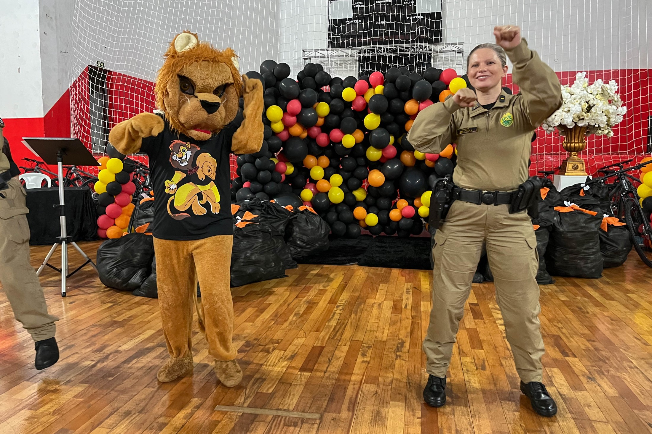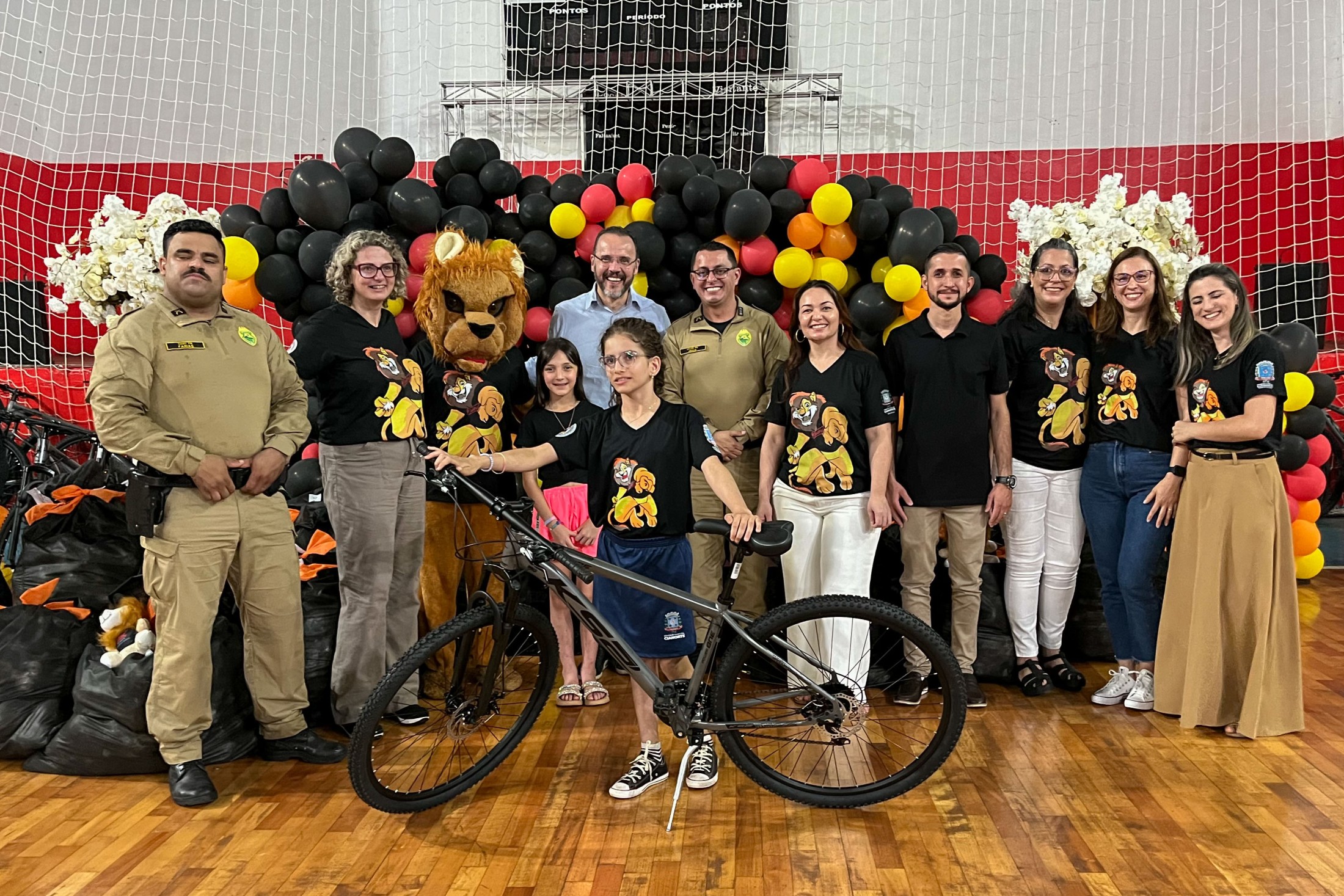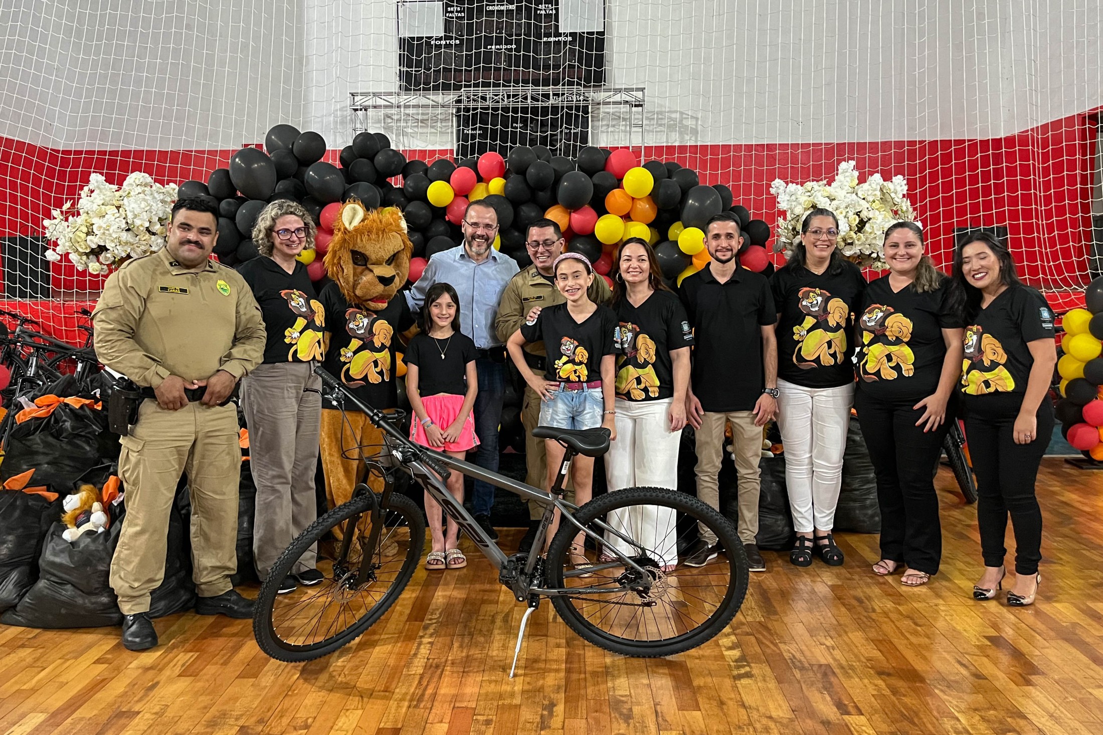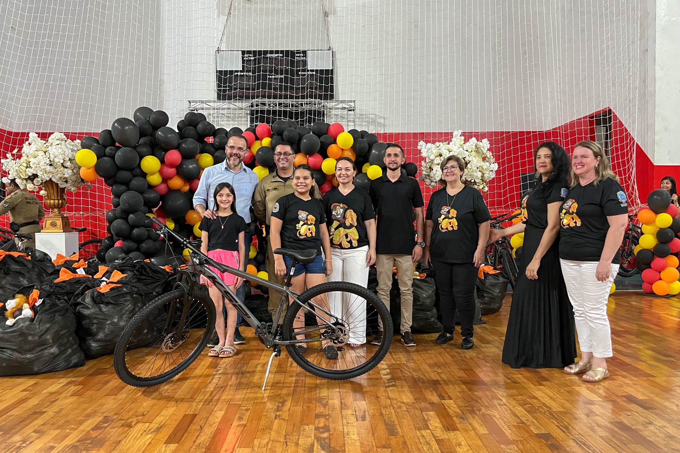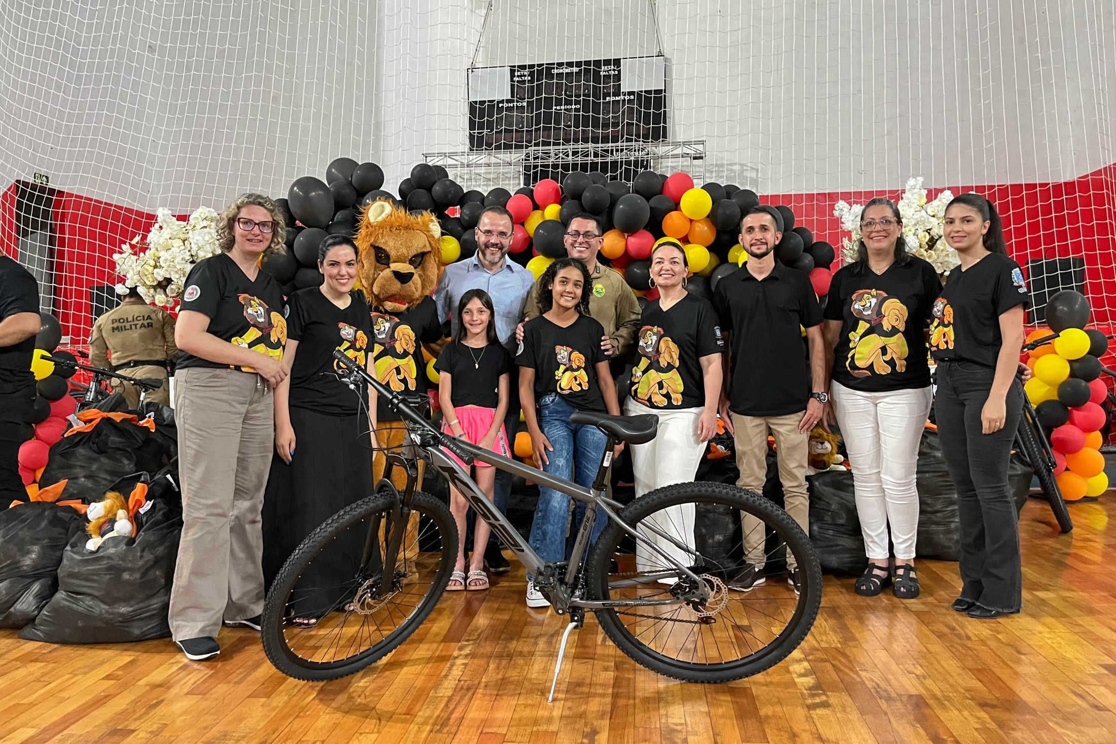 Na oportunidade, os autores das melhores redações sobre o combate às drogas de cada escola receberam uma bicicleta cada. Todos os formandos também foram presenteados com uma pelúcia do leão Dare, mascote do programa. “O que os instrutores do Proerd ensinam em sala de aula precisa do reforço e apoio das famílias. Educar as crianças e adolescentes para serem capazes de fazer boas escolhas, de forma segura e responsável, é um esforço coletivo. Juntos, polícia, escola e família, podemos fazer a diferença”, afirmou o comandante da 5ª Companhia Independente da Polícia Militar, Major Wagner Araújo.