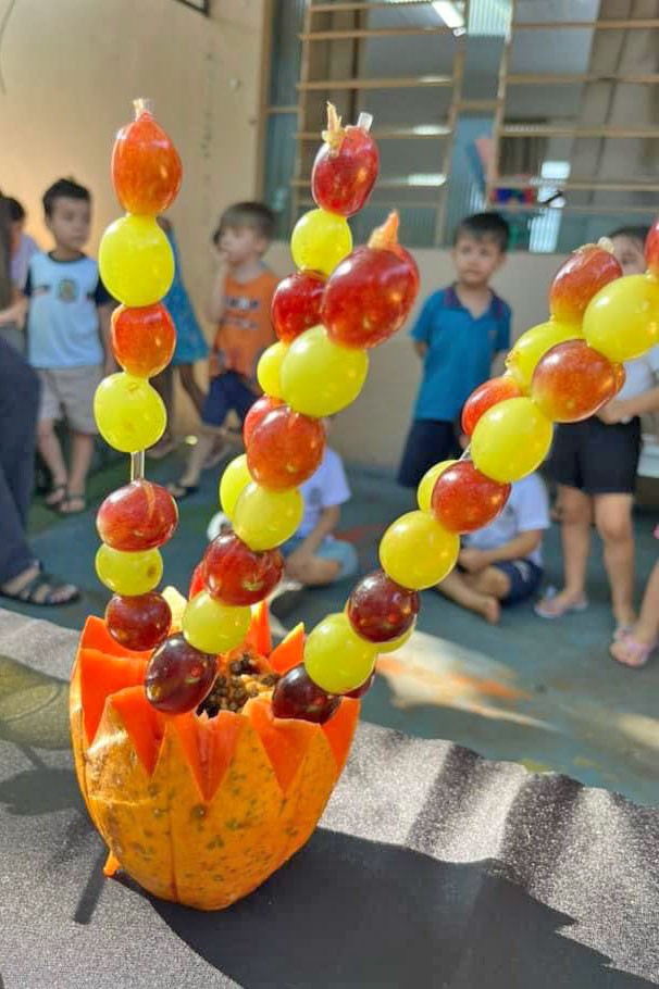 A turma do Maternal II abriu os trabalhos com uma apresentação musical e piquenique. Já a do Maternal I participou da montagem de um cartaz e também de uma atividade com os ingredientes de uma sopa. A do Berçário II pôde conhecer frutas in natura e artificiais.