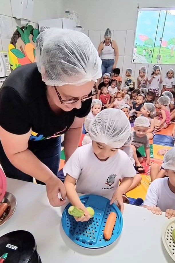 A semana foi de descobertas de novos sabores no Centro Municipal de Educação Infantil (CMEI) Maria Testa Rodrigues. Isso porque, em referência ao Dia Mundial da Alimentação (16 de outubro) e Dia Nacional da Alimentação Escolar (21 de outubro), a equipe desenvolveu o tema alimentação saudável com as crianças.