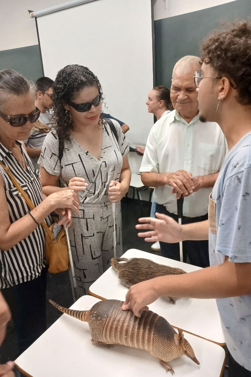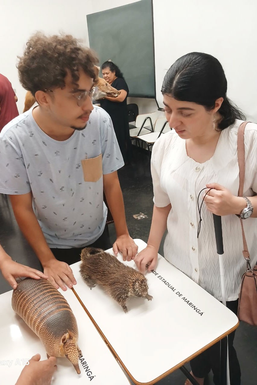 Os estudantes das Salas de Recursos Multifuncionais das áreas de Deficiência Visual e Surdez, atendidos na Escola Municipal Vicente Machado, tiveram um dia diferente, na última segunda-feira (18). Isso porque, puderam participar da Experiência Tátil-auditiva do Laboratório de Zoologia da Universidade Estadual de Maringá (UEM), no campus sede.