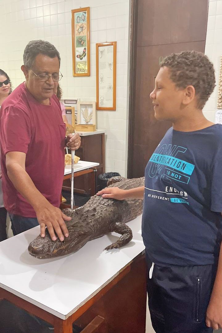 Durante o passeio, os 14 estudantes, acompanhados de três professores, tiveram a oportunidade de interagir com o meio acadêmico e com peças taxidermizadas, conservadas, esqueletos e animais formolizados da fauna brasileira. Participaram, ainda, de atividades práticas, guiadas por acadêmicos do curso de Biologia e técnicos do laboratório de Zoologia, em que exploraram e identificaram animais através do toque.