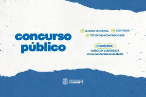 Quem pretende participar do Concurso Público da Prefeitura de Cianorte, que promoverá a contratação de guardas municipais, bem como cadastro reserva para os cargos de técnico em Contabilidade e contador, deve se atentar ao prazo. Isso, porque termina na próxima segunda-feira (16), o período de inscrições do certame. O cadastro é pelo site da Universidade Estadual do Oeste do Paraná (Unioeste), responsável pelo processo: https://concursos.unioeste.br/.
