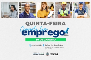 A Prefeitura de Cianorte, por meio da Secretaria Municipal de Desenvolvimento Econômico e da Agência do Trabalhador, promove, nesta quinta-feira (30), mais uma edição do projeto “Cianorte tem Emprego”. A ação será na Praça Itamar Orlando Soares, conhecida como Feira do Produtor, das 9h às 12h, com o objetivo de aproximar trabalhadores das oportunidades oferecidas pelo mercado de trabalho local.
