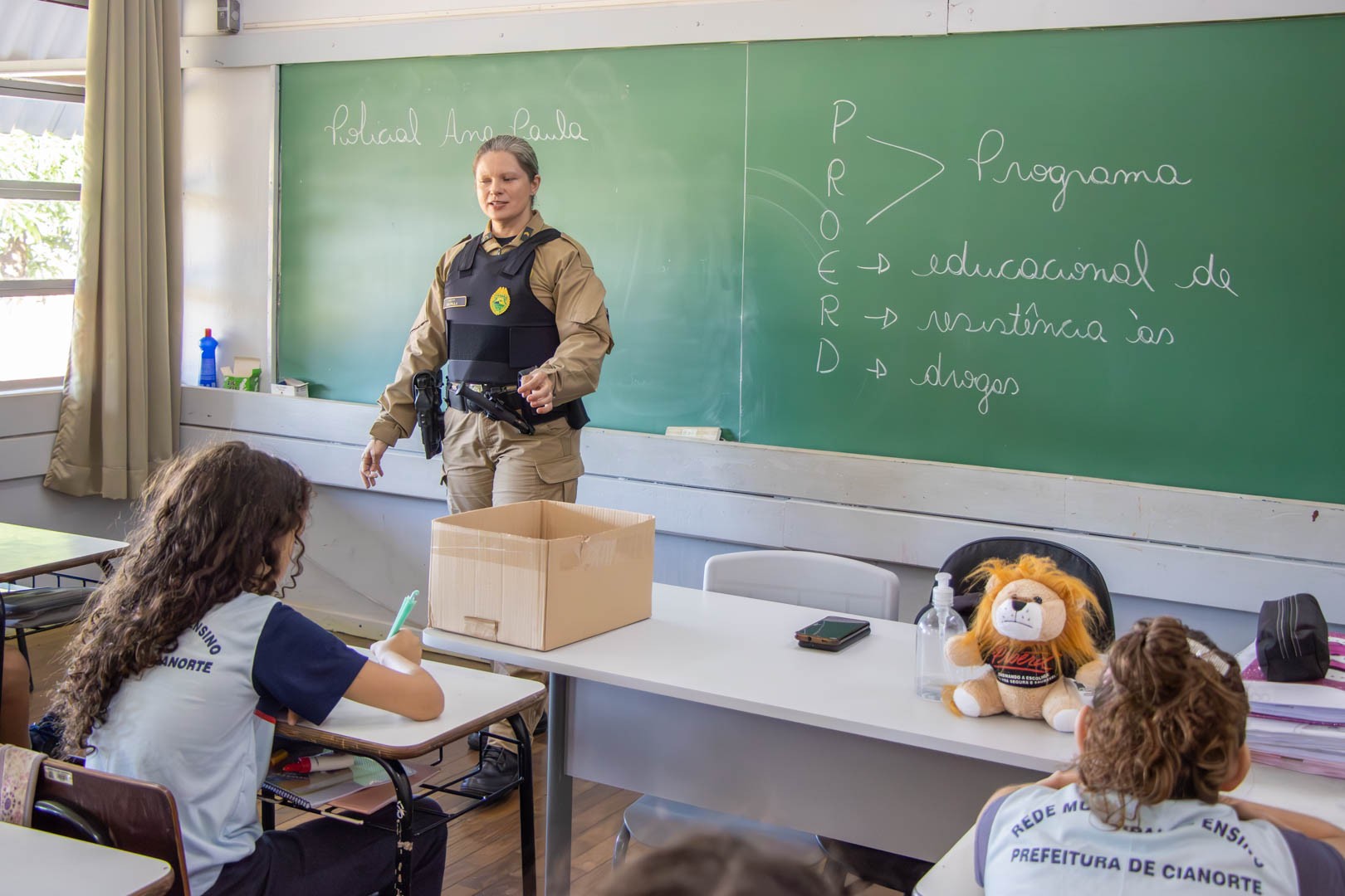 Em Cianorte, a parceria firmada entre a Prefeitura, por meio da Secretaria Municipal de Educação, e a Polícia Militar viabiliza em 2025 mais uma edição do PROERD (Programa Educacional de Resistência às Drogas e à Violência). Desenvolvida nas 39 turmas de 5º ano das 15 escolas municipais, a iniciativa contempla, neste ano, 907 estudantes.