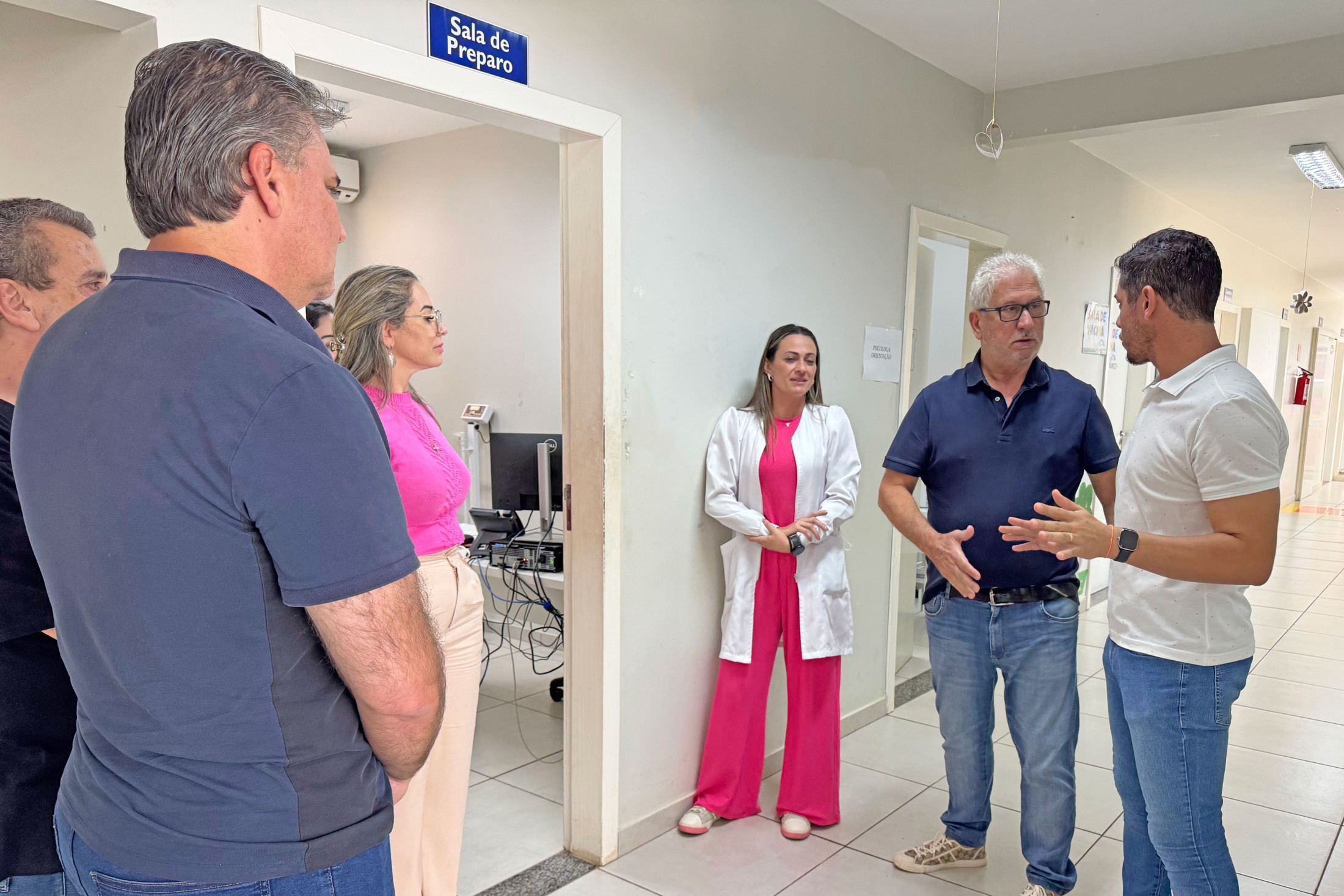 “Nossa intenção foi ressaltar a importância da atenção à saúde do público feminino, que diante das inúmeras atribuições do dia a dia, acaba negligenciando o autocuidado”, destacou o prefeito, Marco Franzato, durante visita à UBS José Maciel Bahia (Extensão), acompanhado do vice, Fão Manfrinato; do presidente da Câmara Municipal, Victor Hugo Davanço; e do secretário municipal de Saúde, Neilson Etanio de Souza.