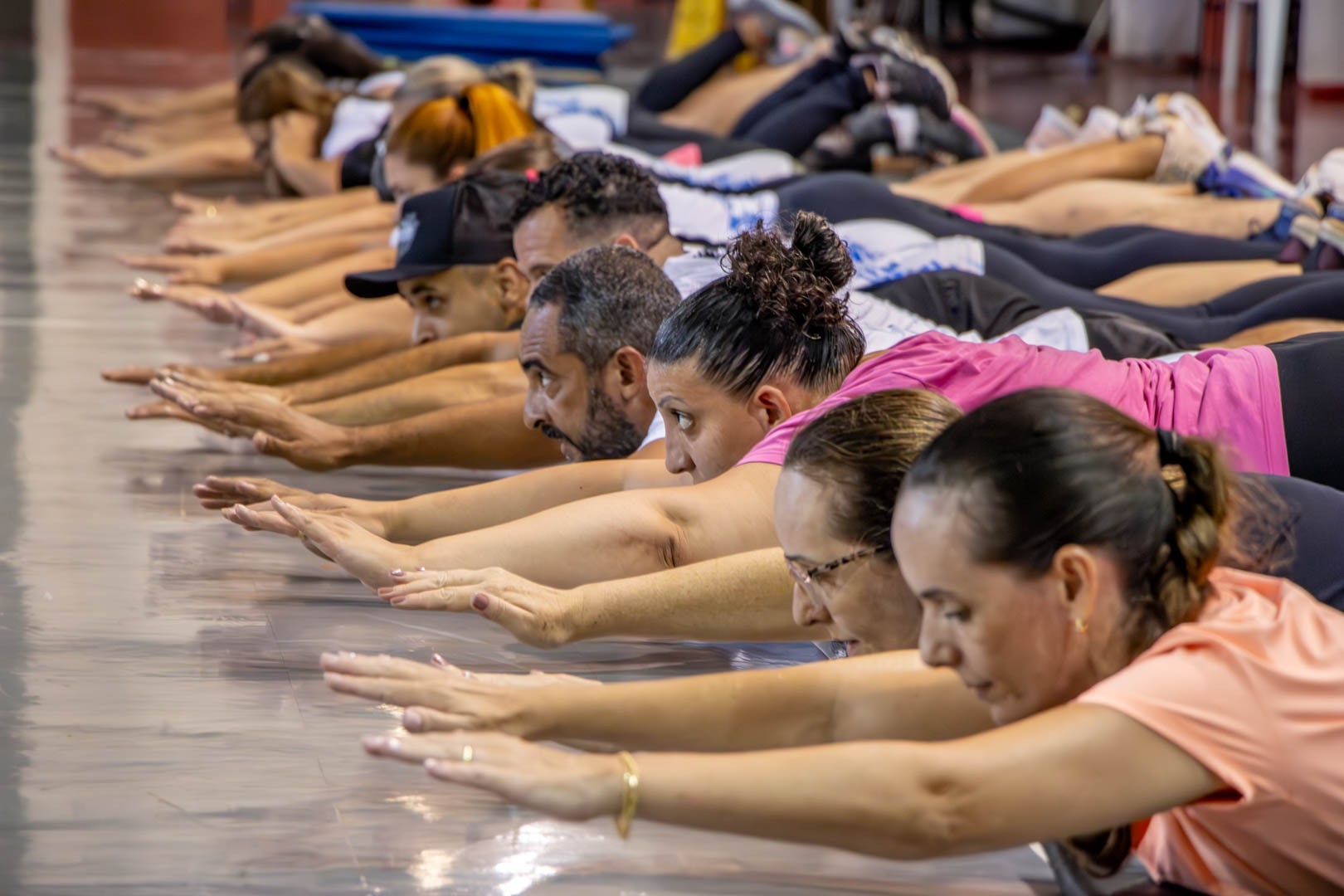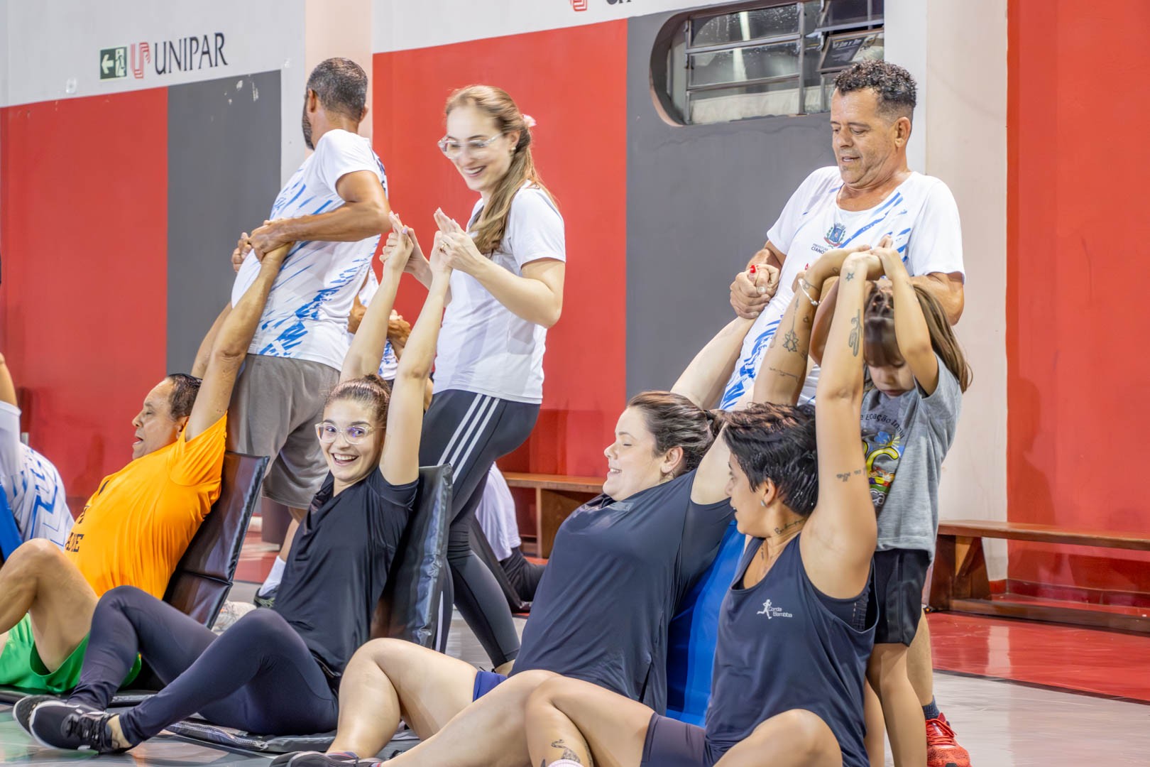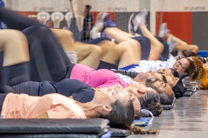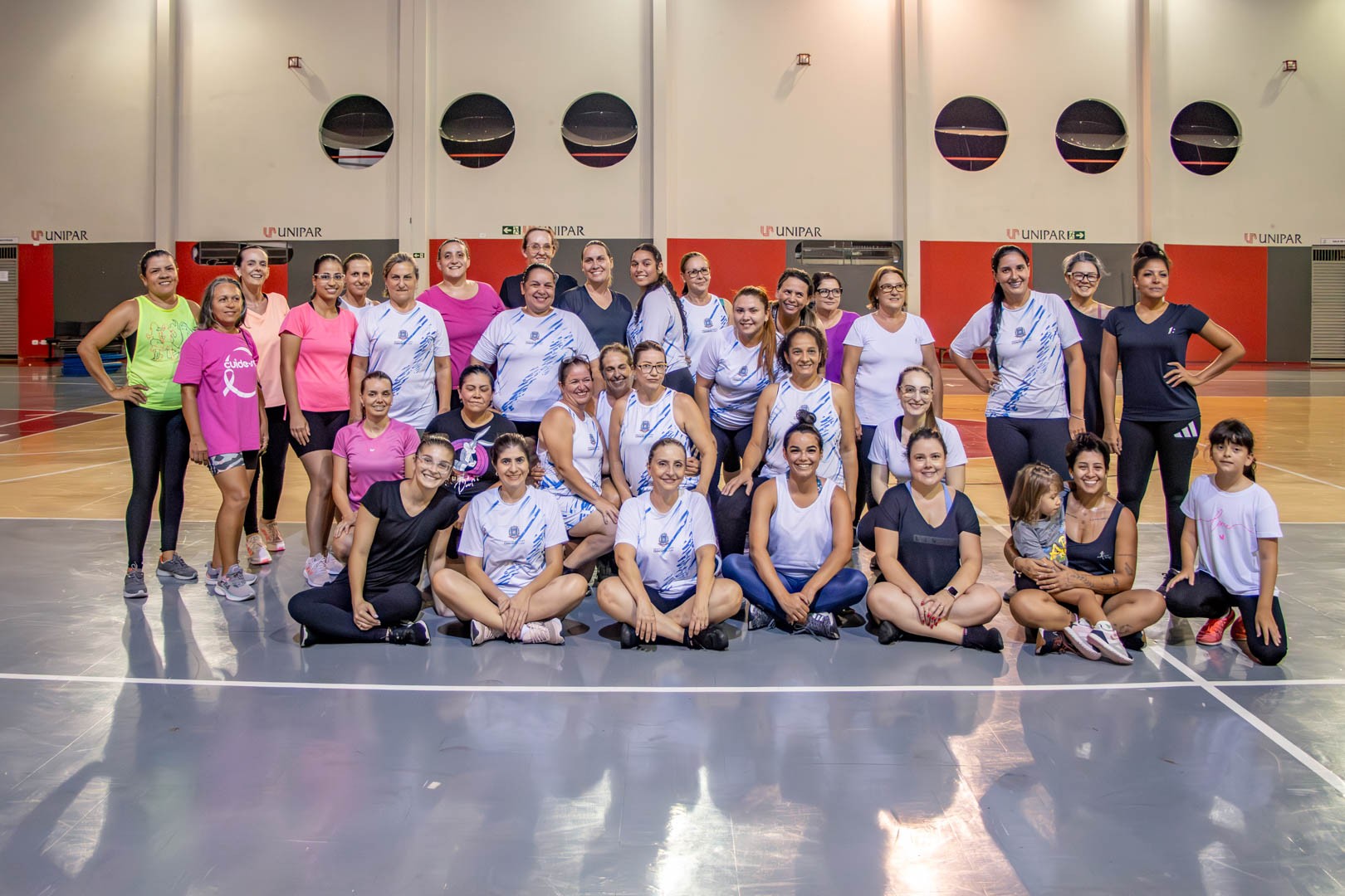 As chuvas de caíram nessa terça-feira (11) não desanimaram o público do Aulão de Funcional, uma das ações do Movimenta Mulher. A atividade foi transferida para o Ginásio de Esportes da Unipar e as participantes tiveram momentos de atividade física aliada a muita diversão, sob o comando do professor Silvinho Floriano. “As participantes saíram do aulão motivadas e felizes. Foi, sem dúvidas, sensacional”, destacou a secretária municipal de Políticas Públicas para Mulheres, Crianças e Adolescentes, Stephanie Piveta Azevedo.