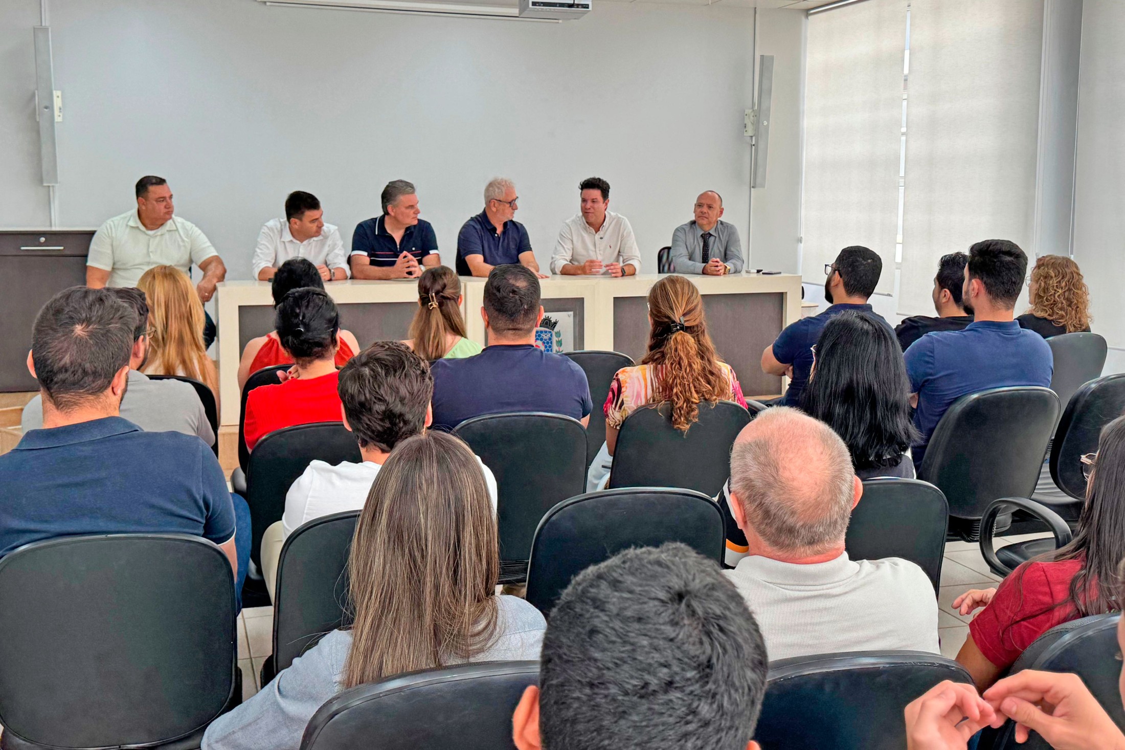 O secretário de Estado do Planejamento, Guto Silva, e o superintendente da Casa Civil, Júnior Weiller, reuniram-se com lideranças municipais, nesta quarta-feira (19)