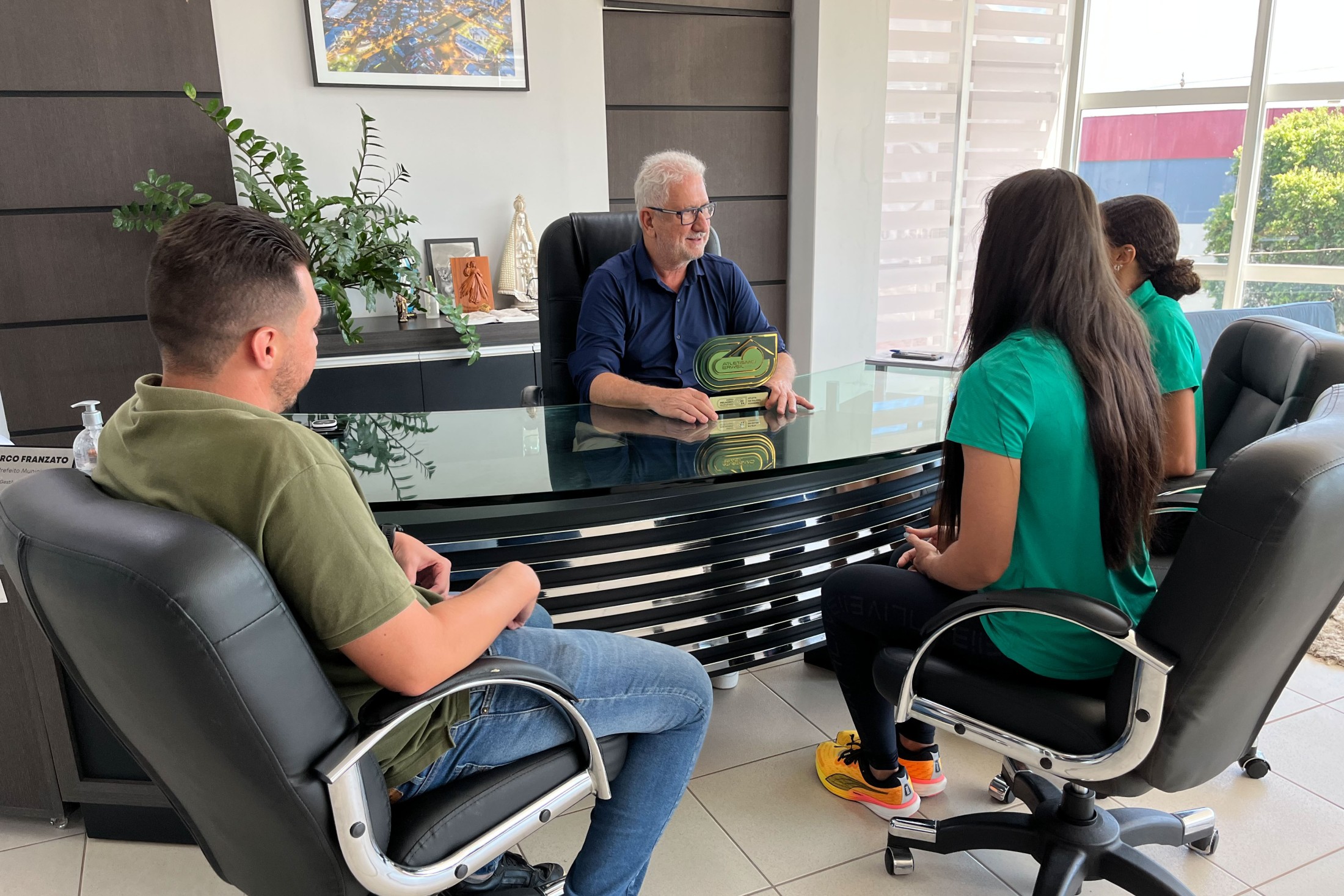 O prefeito de Cianorte, Marco Franzato, recebeu em seu gabinete, na manhã dessa terça-feira (25), a atleta cianortense Amanda Miranda da Silva, que no último domingo (23), foi uma das homenageadas no 4º Prêmio Melhor do Ano do Atletismo Loterias Caixa, organizado pela Confederação Brasileira de Atletismo – Atletismo Brasil. Na oportunidade, Amanda recebeu o prêmio “Atleta da Galera Feminino”, eleita por votação popular.