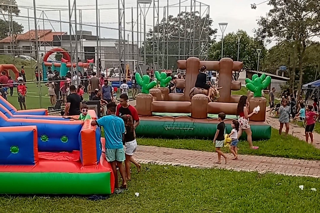 No último sábado (12), o Meu Campinho do Jardim Morada do Sol recebeu muita diversão, alegria e brincadeiras. Isto porque, o Rua de Lazer marcou o dia dos moradores da região. O projeto, desenvolvido pela Secretaria Municipal de Esporte e Lazer (SMEL), em parceria com o curso de Educação Física da Unipar, levou pintura facial, atividades recreativas e brinquedos infláveis para as crianças presentes.